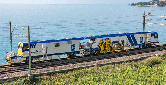 The B 66 UC-D is a high-performance universal, double head, continuous action, tamping machine designed for normal and high-speed lines. The B 66 UC-D consists of a tamping shuttle supported by two bogies and on which the machine frame rests. The power unit is located on the power unit trailer resting on a bogie and an axle.